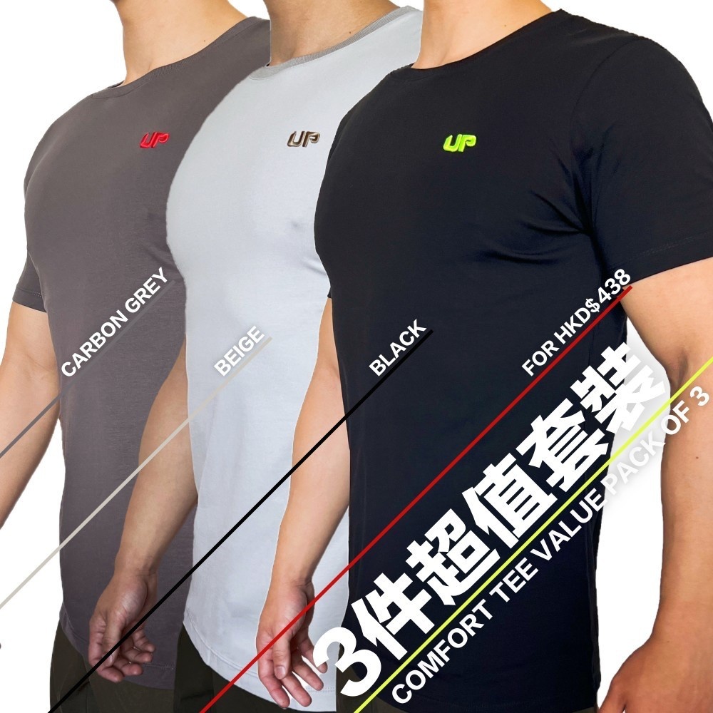 包括 3 件超柔軟彈力棉質T恤,標準版型,圓領設計,左胸標誌性刺繡品牌標誌。