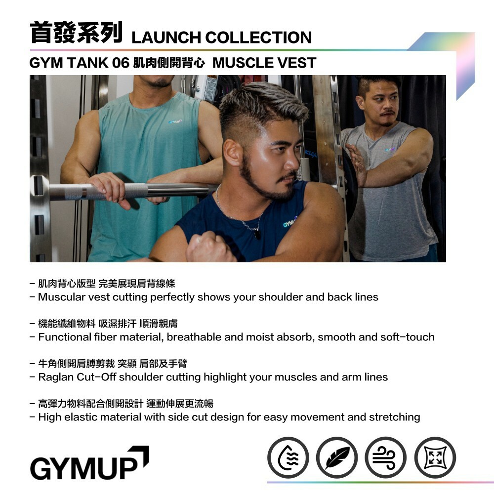 - 肌肉背心版型 完美展現肩背線條